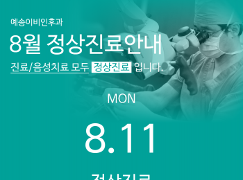 예송이비인후과 8월 11일 정상진료 안내드립니다.