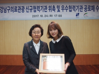 예송이비인후과 음성센터(이하, 예송음성센터)가 지난 24일 서울 강남구청에서 진행된 ‘강남구 의료관광 우수기관 공로패 수여 및 신규 협력기관 위촉식’에서 ‘2017년 의료관광 사업 우수기관’으로 선정돼 공로패를 수여…