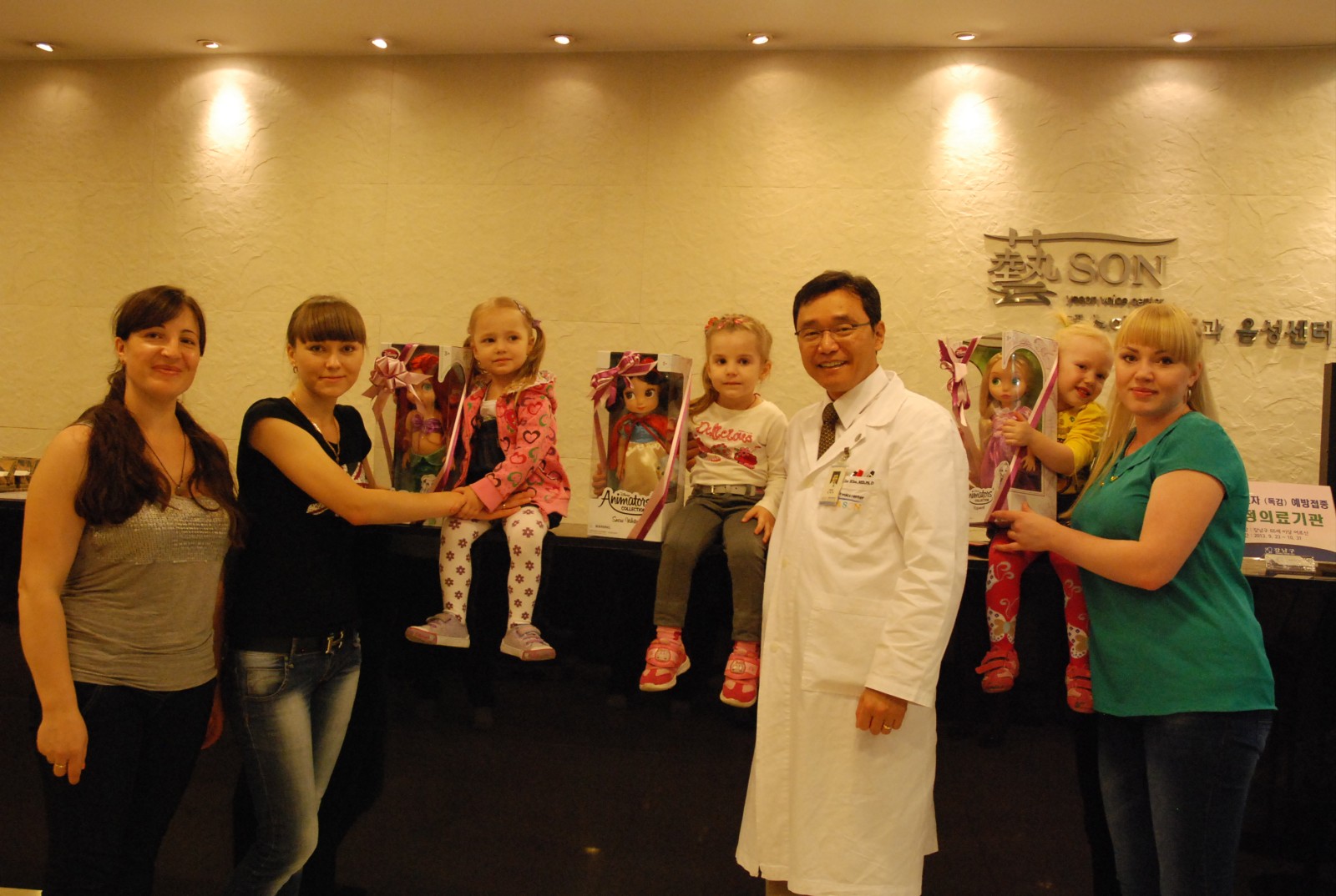 예송이비인후과 음성센터 (김형태 원장)는 최근 '나눔의료사업'의 일환으로 러시아와 몰도바에서 온 소아형 후두유두종 환아 세 명의 수술을 진행했습니다. 보건복지부가 주최하고 한국보건산업진흥원이 주관하는 나눔의료사업은 해외 저소득층 환자의 무료수술을 통해 세계에 한국의료기술을 널리 알리고자 하는 취지로 시작됐습니다. 예송이비인후과는 지난 2011년부터 매년 상?하반기로 나누어 꾸준히 참여하고 있습니다. 이번 2013년 하반기에 방문한 아이들은 모두 세명으로 소아형 후두유두종을 앓고 있었습니다. 러시아에서 온 Liliya Timoshenko (3세, 여)는 태어난 지 6개월 만에 후두유두종을 진단받고 러시아에서 3개월에 한번씩 종양제거술을 받았다. 하지만 재발이 잦고 후두가 상처로 좁아져 한국에 오기 전까지 목소리가 나오지 않았으며 호흡곤란 때문을 잠을 못 자고 식사하기도 힘든 상태였습니다. 러시아 국적의 Polina Gergert (4세, 여) 역시 1살 때 후두유두종을 진단받고 2~3개월에 한번씩 수술을 받았으나 목소리는 나오지 않는 상태였으며재발이 잦아 호흡곤란 증상이 자주 찾아왔습니다 몰도바 국적의 Irina Cheles (5세, 여)는 2살 때 후두유두종을 진단받았습니다. 몰도바는 의료 시설이 낙후해 가족들이 러시아로 이주해 치료에 매진했으나 1년에 다섯 번의 수술을 받아도 호전되지 않았습니다. 오히려 수술 후유증으로 인한 성대 유착이 심해져 숨쉬기 힘든 상태였습니다 세 명의 환아 모두 9월 25~27일 사이 예송이비인후과에서 수술을 받았으며, 특히 Liliya 와 Irina는 후두유두종 병변이 넓고 심해 2차 수술까지 받고, 수술 일주일 후 경과를 확인했습니다. 이들은 지난 2일에 창덕궁 비원에서 특별한 한국문화체험의 시간을 갖고 지난 7일 출국했습니다. Polina Gergert의 엄마, Yulia Gergert는 "최신 의료 시설을 갖춘 예송이비인후과 음성센터에서 예송나눔의료사업 프로젝트를 통해 무료로 수술 받을 수 있어서 감사드린다."며 "드디어 아이의 목소리를 들을 수 있다는 희망이 생긴다." 며 감사의 눈물을 보였습니다. 이들은 약 6개월~1년 후 예후를 지켜보고 재진이 필요할 경우 다시 한국을 찾게 됩니다. 러시아에서 열 차례 수술 받고도 재발하는 소아형 후두유두종은 후두유두종은 수십 개에 이르는 종양(사마귀)이 성대 부위를 덮는 질환으로 소아형의 경우 재발률이 80%에 이르는 질환입니다. 후두유두종의 원인은 인유두종바이러스(Human Papilloma Virus; HPV)에 의한 것 입니다. HPV 6형과 11형이 후두 점막에 감염되면 이곳에 수십 개에 이르는 종양(사마귀)이 성대 부위를 덮습니다. 후두유두종은 성인형과 소아형으로 나뉘는데 소아형의 경우, HPV 6형과 11형 보균 산모가 아이를 낳을 때 산도(産道)에서 태아가 제대로 빠져 나오지 못하고 멈추게 되면 아이에게 수직 감염될 수 있습니다. 이러한 바이러스가 아이의 후두 점막에 잠복해 있다가 5세 이전에 발생하며, 재발률이 높은 것이 특징입니다. 예송이비인후과 김형태 대표원장은 "소아형 후두유두종은 단순한 목소리 변화 때문에 불편한 것이 아닌 호흡곤란과 질식사의 위험이 있는 심각한 질환이다."며 러시아와 중국, 카자흐스탄, 몰도바 등 의료기술이 발달하지 못한 나라에서는 후두유두종이 난치병이자 불치병으로 분류되어 많은 아이들이 고통받고 있다고 말했습니다. ◑ 종양이 넓게 퍼지고 재발이 잦을 경우 수술적 치료 필요해 후두유두종은 수술과 함께 항바이러스제를 환부에 주입하는 방법이 있으나 러시아 아이들과 같이 수술로 인한 유착이 심하거나 종양이 넓게 퍼져있는 경우레이저 수술을 시행하는 것이 효과적입니다. 수술방법은 유두종의 크기나 상태에 따라 환자의 입을 통해 후두경을 삽입정교하고 미세한 현미경 기구로 유두종을 제거하는 후두미세수술을 시행합니다. 미세한 유두종 세포를 펄스다이레이저로 없애주는 PDL 수술은 성대 점막의 표면을 고르게 만들어 재발률을 낮추며 상처생성을 억제해 목소리 회복에 효과적입니다. 고도의 기술을 요하는 수술인만큼 숙련된 전문의에게 수술 받는 것이 중요합니다. 김형태 대표원장은 "어린 아이들이 의료 기술이 취약한 나라에서 열번 이상의 수술을 받고도 재발해 숨쉬기 힘들어 하는 모습을 보면 안타깝다,"며, "한국에서 좋은 기회를 통해 수술을 받고 완치 되어 가는 모습을 보면 기쁘다. 앞으로도 계속 해외의 많은 아이들에게 희망을 주고 싶다."고 말했습니다.