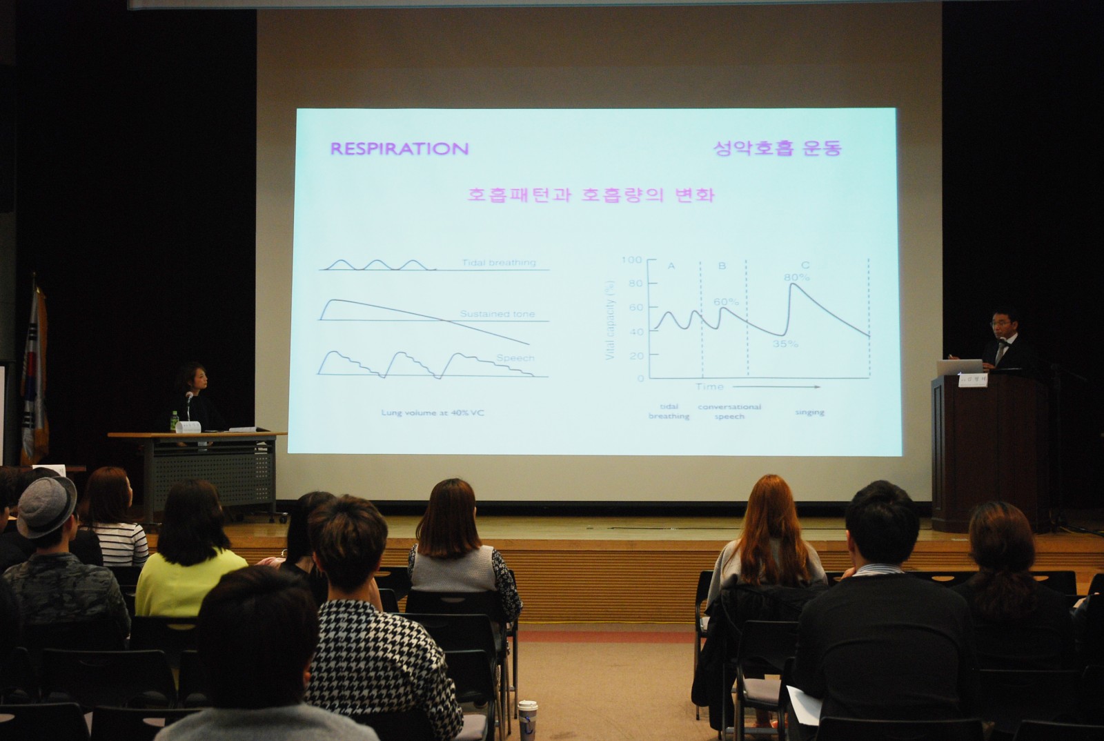 한국공연예술인의 음성전문분야에 대한 이론을 체계화하고 연구를 통해 예술가 및 교육전문가를 양성해 한국 문화예술 발전에 기여하고자 설립된 사단법인 ‘KAVPA(The Korean Association for Voice of Performing Arts)’가 주최하고 예송이비인후과 음성센터(이하, 예송음성센터)와 (주)제일약품이 후원하는 제2회 한국 공연예술발성 연구회 심포지엄이 지난 11일 삼성1동 문화센터에서 개최했습니다. 이번 심포지엄은 공연예술 발성의 또 다른 쟁점으로 부각되고 있는 ‘호흡’에 관한 주제로 각 공연예술분야의 전문가 강의와 마스터클래스(master class)등으로 진행됐습니다. 프로그램은 예송음성센터 김형태 대표원장님의 호흡의 발성 생리의 주제를 시작으로 진행됐으며 해외초청연자로 영국 Essex대학의 Tara McAllister-Viel 교수(Acting School 교수)가 ‘배우를 위한 호흡방법’에 대한 전반적인 강의와 마스터 클래스를 진행했습니다. 이번 심포지엄은 실용음악 전공학생, 뮤지컬 배우, 가수지망생, 성악가, 일반인 등 다양한 분야의 참가자들에게 발성과 호흡에 대한 전문지식과 정보를 전달했습니다.
