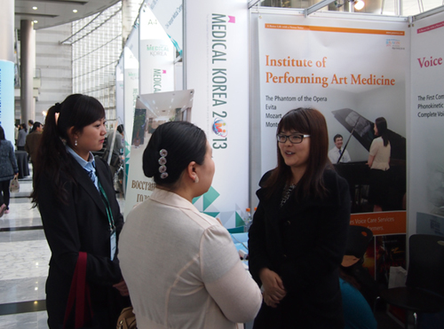 예송이비인후과 음성센터는 지난 9일~ 11일, 글로벌 헬스케어 산업을 주제로 한 ‘메디컬 코리아2013- 제4회 글로벌 헬스케어&의료관광 컨퍼런스’를 서울 코엑스 그랜드 볼륨에서 가졌습니다. 보건복지부, 문화체육관광부가 주최하고 한국보건산업진흥원이 주관하며 한국관광공사(KTO), 한국국제의료협회(KIMA)가 특별후원하고 서울특별시가 후원하는 이번 행사는 국내 의료기관 및 관·공사에서 41개 단체, 64개 부스가 참가해 36개국, 헬스케어 분야의 종사자들이 600명 이상 모여 관심이 뜨거웠습니다. 글로벌 헬스케어 전시회에서 해외 바이어들에게 5개 언어권 별로 1:1 상담을 진행하며 전세계의 헬스케어 종사자들은 아시아에서 유일무이한 예송이비인후과의 목소리 치료로 특화된 전문 의학 음성센터에 많은 관심을 받았습니다. 아울러, 의료관광 컨퍼런스 ‘비즈니스 미팅’을 통해 영어권과 러시아권에서 온 바이어들도 음성센터의 외국인 환자 수요에 대한 정보에 대해 깊은 관심을 가져 앞으로 더 확장된 글로벌 네트워크로, 해외 환자 교류가 더욱 더 활발해질 것으로 보입니다.