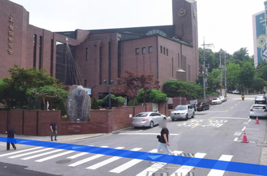 2 쭉 직진해서 청담동 성당 앞 횡단보도를 건너세요.