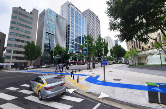3 청담동 명품거리의 끝 버버리 매장 앞 횡단보도를 건너세요.