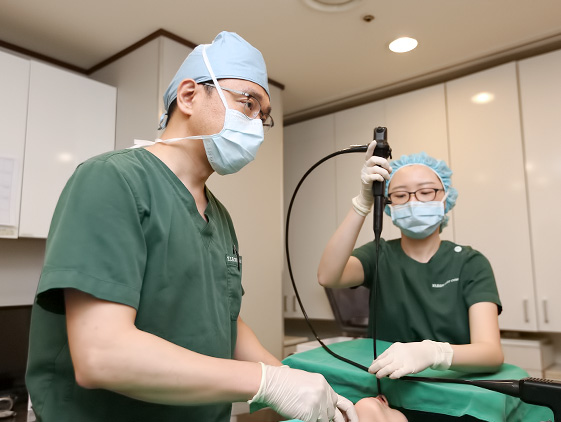 후두내의 선천성 이상이나 염증성질환 및 기능 이상을 확인하기 위하여 후두영상장비인 후두내시경검사와 후두스트로보검사 등이 필요합니다.